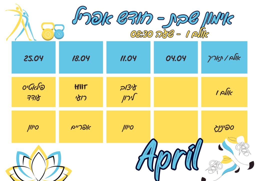 בעונה הנוכחית הוספנו חוגים חדשים לבקשתכם והתאמנו את מערכת החוגים כך שבכל יום יתקיימו חוגים ברמות עצימות שונות להתאים לכל המנויים בכל רמות הכושר.