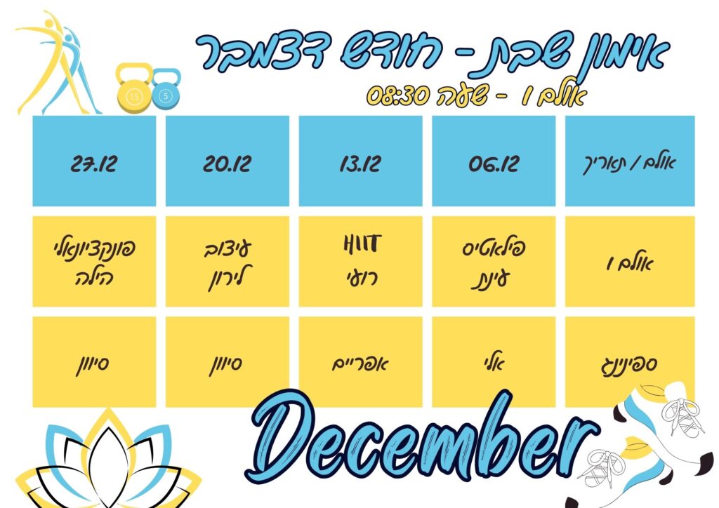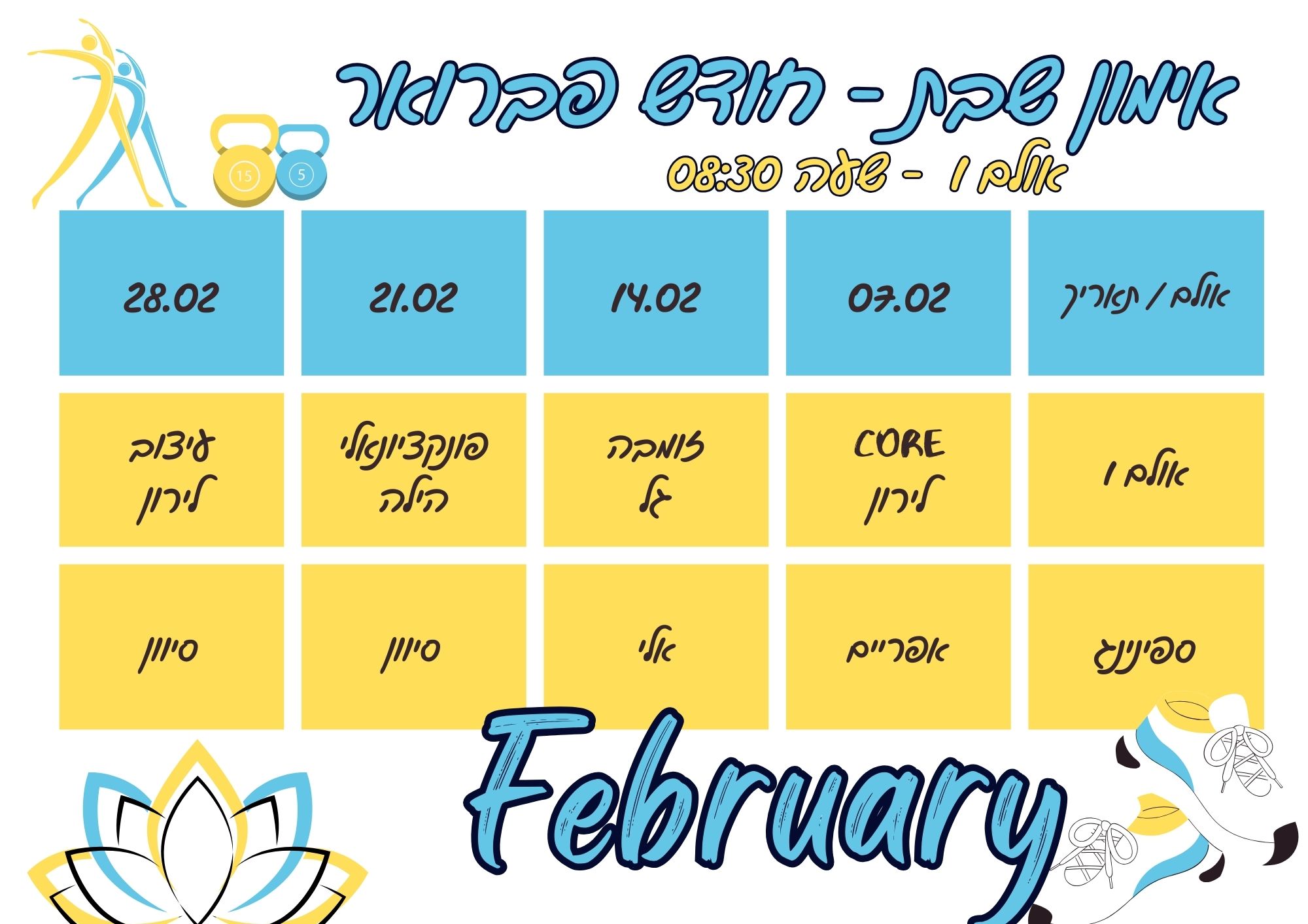 בעונה הנוכחית הוספנו חוגים חדשים לבקשתכם והתאמנו את מערכת החוגים כך שבכל יום יתקיימו חוגים ברמות עצימות שונות להתאים לכל המנויים בכל רמות הכושר.